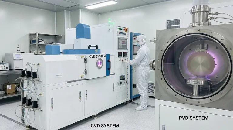 재료의 초기 상태(고체 대 기체)를 이해하는 것이 이 두 가지 강력한 코팅 기술이 작동하는 방식을 이해하는 핵심입니다. 하나는 물리적 상태 변화이고 다른 하나는 화학적 변형입니다.
