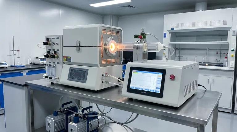 핵심적으로, 고급 화학 기상 증착(CVD) 퍼니스는 정밀도와 재현성을 위해 설계된 통합 기능들을 제공합니다. 이 중 가장 중요한 것은 복잡한 온도 프로파일링을 위한 다중 세그먼트 프로그래밍 가능 컨트롤러(PID/PLC), 환경 제어를 위한 자동 가스 및 진공 시스템, 그리고 공정 모니터링 및 분석을 위한 실시간 데이터 로깅입니다. 이러한 시스템들은 함께 작동하여 퍼니스를 단순한 열원에서 고도로 제어되는 합성 장비로 변모시킵니다.