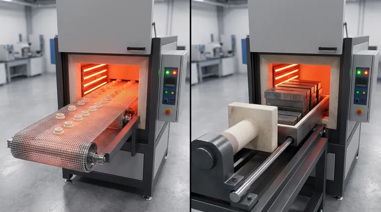- 온도 스펙트럼의 최고점(>1200°C)에서 일관되게 작동하는 데 주로 중점을 둔다면: 견고한 세라믹 노상 및 트레이 시스템을 갖춘 푸셔로가 종종 더 나은 장기적인 내구성을 제공합니다.