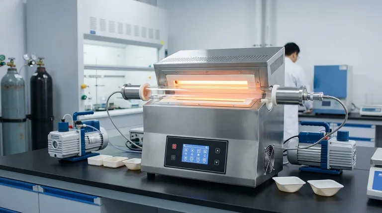 또한 진공 펌에 연결하여 낮은(대략적인 진공) 또는 높은 진공(최대 10⁻⁵ torr)을 달성할 수 있으며, 이는 대기 오염 물질을 제거하는 데 필수적입니다.