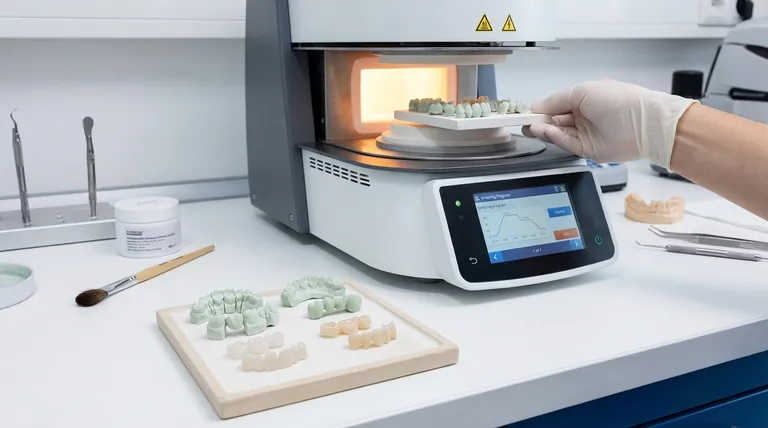 소성로는 정밀하고 다단계 사이클을 실행합니다. 먼저, 낮은 온도에서 바인더를 천천히 연소시킵니다. 그런 다음 온도를 매우 높게 올려, 종종 1,400°C에서 1,600°C 사이에서 지르코니아 입자를 완전히 조밀한 단일체 상태로 소결합니다.