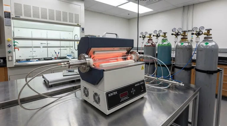 튜브 전기로의 주된 기능은 시료를 가열하는 것이지만, 진정한 힘은 시료 주변의 화학 환경을 정밀하게 제어하는 능력에서 나옵니다. 가스를 주입하면 주변 공기가 배출되어 제어되지 않는 산화를 방지하고 특정 재료 변환이 가능해집니다.