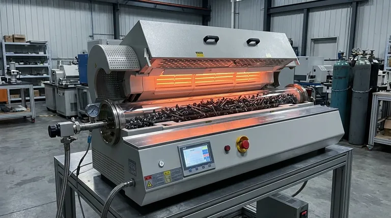 로터리 레토르트로의 특징은 회전하는 원통형 챔버(레토르트)입니다. 이러한 지속적인 굴림 동작은 대량의 부품에 걸쳐 균일한 열처리를 달성하는 열쇠입니다.